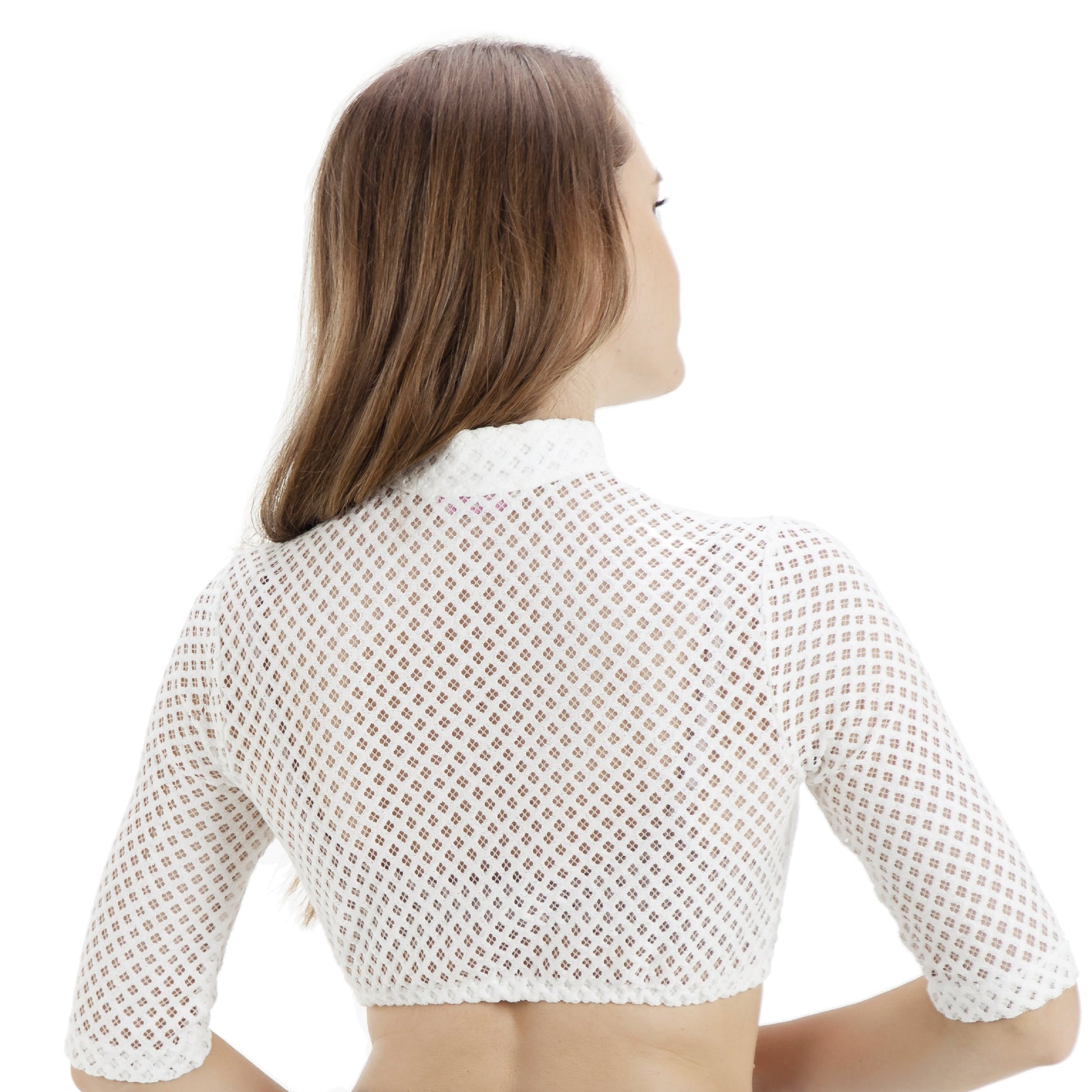 - 【Elegant und Exquisit】Die trachtenbluse damen weiß,mit Knopfverschluss vorne,hohem kragen und halber Ärmel-Design,transparent.