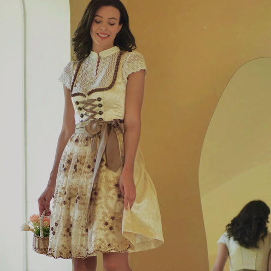 【2-teiliges Trachtenkleid】 Das Midi Dirndl besteht aus einem Kleid und einer Dirndlschürze. Perfekt für verschiedene Anlässe, ohne dass Sie zusätzliches Zubehör kaufen müssen.