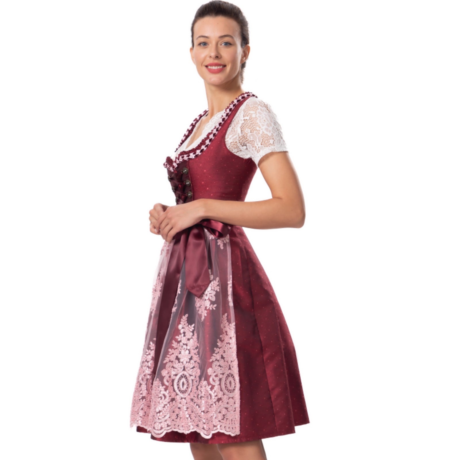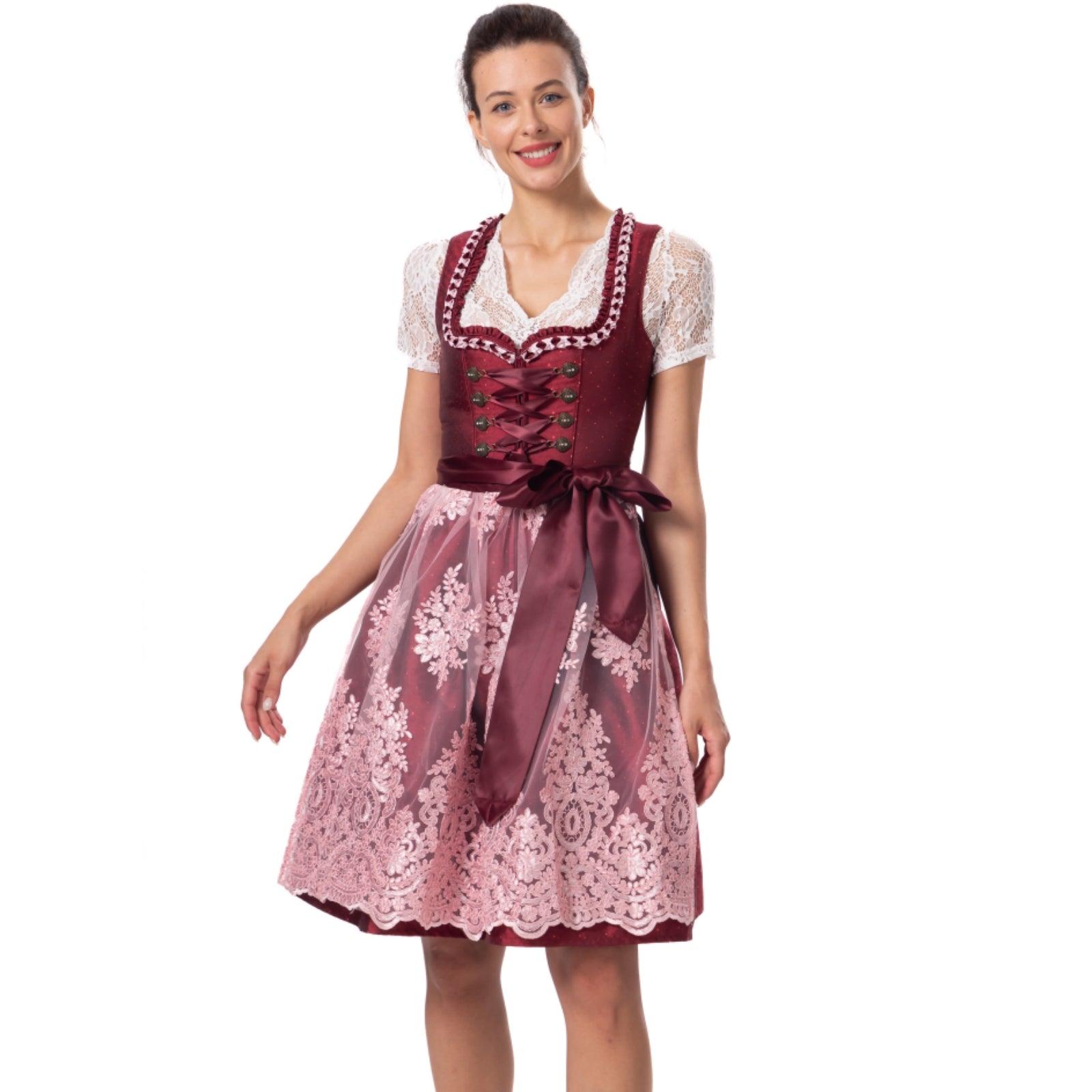Kelliar Dirndl Rot Damen Darkrot Midi Trachten Dirndl Kleidung f. Oktoberfest Trachtenkleid Größ 34-44 Ohne Dirndlbluse